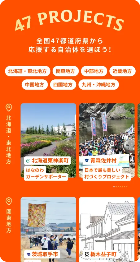 日本全国の自治体と協力し、未来に向けて日本各地の地域コミュニティを元気にする活動です。