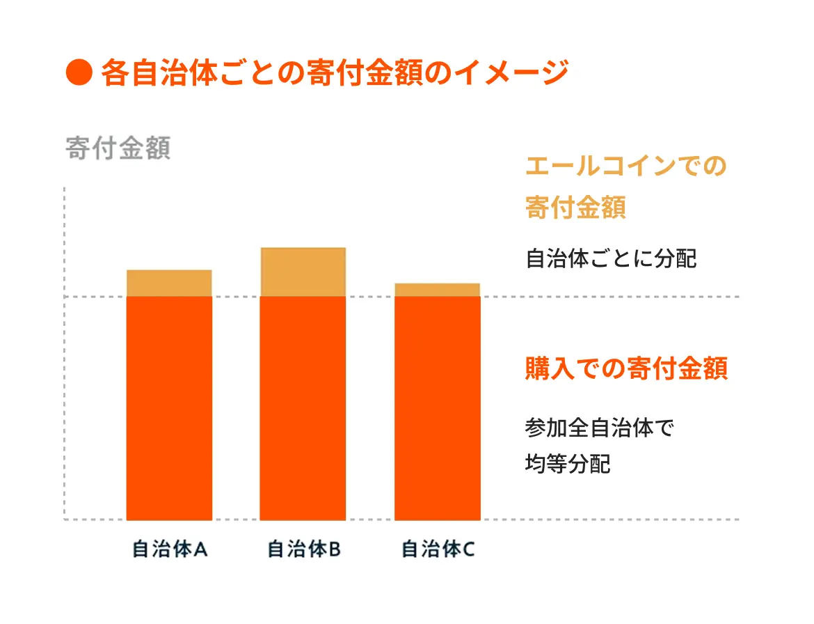 各自治体に対して、エールコインを使って寄付された回数×0.5円が加算されます。